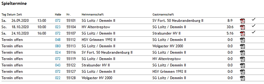 Die Saison wurde leider coronabedingt am 26.10.2020 abgebrochen und nicht wieder gestartet. |