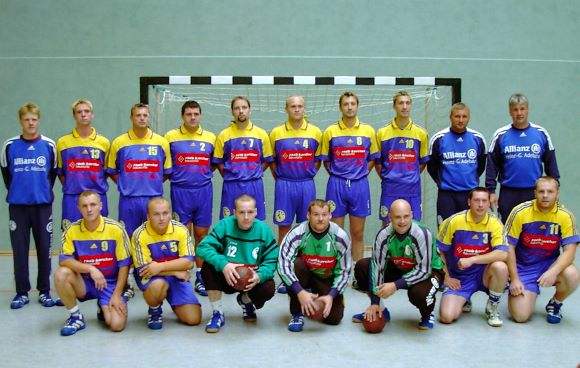 | h.R.v.l. Jürgen Radloff (co. Trainer), Lars Effenberger, Holger Ahrendt, Arne Budweg, Carsten Berkenhagen, Tomasz Matoszko, Jacub Blejsz, Christian Langforth, Krysztof Janikowski (Trainer), Frank Schumacher (Mannschaftsverantwortlicher) |